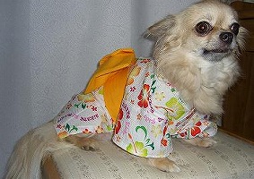 こつぶ(チワワ)の浴衣がやっと縫い終わりました。5歳の誕生日に間に合いました。