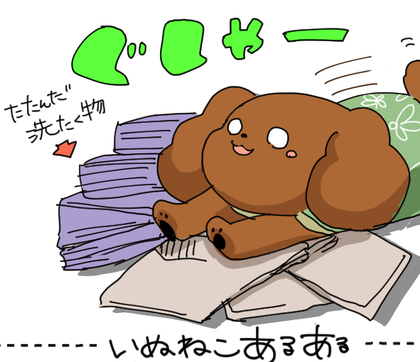 ホーム > 1コマわんこ日記 > わんこあるある6 ぐしゃー 公開日:2015/03/30 最終更新日:2015/03/31 洗濯物をたたんでいるとー ぐちゃぐちゃにされます♪ 作画:haru* 【わんこ服.com】http://www.purely-jewel.com/ 1コマわんこ日記