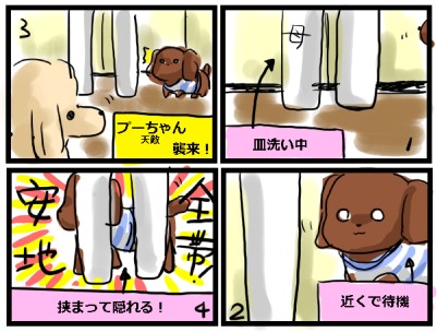 ホーム > haruのわんこ漫画 > 安全地帯 公開日:2010/09/10 最終更新日:2014/05/17 プーさんばかりでなく、haruやnatsu(次女)が寄ってきても のんこは こうして避難します。 &朝、顔を洗っている時も、全面所の下にきて この状態でずっと私を見上げているのんこです(^_^)v 【わんこ服.com】http://www.purely-jewel.com/ haruのわんこ漫画 のんこ プーさん