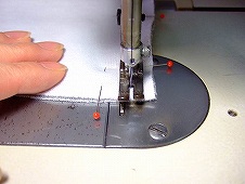 ずれないように手で押さえてぐるぐるっと2周縫います。ミシン目はやや細かい目に設定してください。