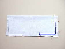 この【縫い止まりの位置】に、目印としてまち針をうっておいてください。