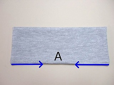 両端(写真 :青矢印)に合わせて綺麗に折り、アイロンをかけて形を整えます。