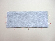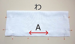 (写真 :Aの間隔が8〜10cm程度になる位置に、まち針をうっておく)