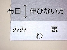 ※「みみ」がない場合は、布を引っぱってみて【伸びない方】が「みみ」の方向(布目)です。