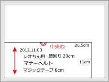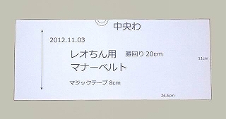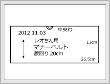 この時、各辺の寸法や、腰回りの寸法、○○君用マナーベルト等、名前や作成した日付や