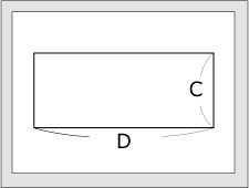 図に記入した【CとD】の寸法で、コピー用紙などに長方形を書きます。(例:C→11cm×D→26.5cmの四角形を書く) 図 のように紙の中央に書いても良いですが、図 のように紙の端を利用した方が書きやすいと思います。紙の大きさが足りない場合は、何枚か貼り合わせるか、チラシや新聞紙などを利用してもOK。