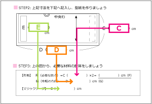 【E】のマジックテープの寸法なども一緒に書き込んでおくと、後でわかりやすいですよ^^。