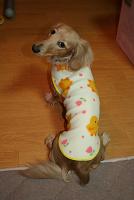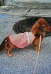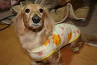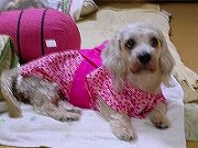 調子にのってきたので、今日、生地をどっざり買い出しに行きました。ももちゃんの服もちょっと大きかったですが、とっても喜んでもらえました。また頼まれたので、今度はMSサイズで作成してみま〜す^^。弟夫婦のところにもMシュナウザーがいてるので、作ってあげようと思ってます。