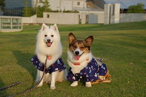 浴衣を着ていつものように遊んでも、全く着崩れず。スピッツのれおくんの袖がちょっと短すぎたことが失敗でした。でも、全く嫌がらずに着ていてくれたので...嬉しかったですよ〜。