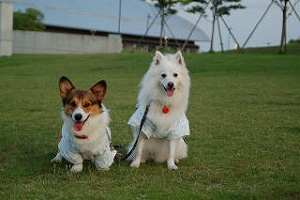 パターンが小さいものからあるので、赤ちゃん時代から「わんこ服」を着せていました。とても人気ものになりましたよ! 最近やっと「きゃみわんぴ」のサイズ直しが出来て、お揃いで着せています。