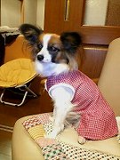 我が家の空(クゥー・チワワ♂・6ヶ月・体重1kg)は、身体が小さくて市販の洋服ではブカブカすぎて困っていました。そして、ネットで色々探していた時にここの事を見つけて早速型紙を購入させていただきました。