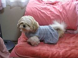 こんにちわ♪こちらはただ今日曜日の午後になったところですが、今朝から型紙をおこしてはじめてのわんこ服に挑戦してみました。私にしましては大満足のデビュー作品が出来上がりましたので、早速ブログにアップしましたので、よろしければご覧下さい。